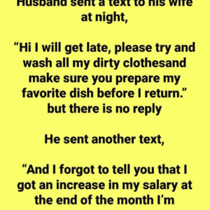 Late one night, a husband sent a text to his wife asking her to wash his dirty clothes and prepare his favorite dish before he returned home….