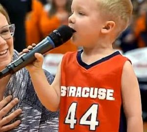 In front of an audience of more than 6,000, a 3-year-old boy sang the entire hymn