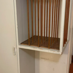 What is this / used for? Found in an old house we just moved into. It’s in the kitchen in an old English house up in the Midlands UK. Thought it may have been for chopping boards / lap trays? Dowels are relatively flexible and are a tad loose.