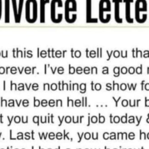 I’m writing you this letter to tell you that I’m leaving you forever. I’ve been a good man to you for 7 years & I have nothing…