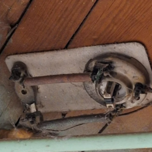 Strange ceramic plate on basement ceiling under kitchen? 103 year old house! Any idea?