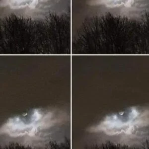 Man sees a luminous form peeking through the clouds.