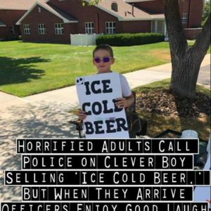 Police are called on boy selling ‘Ice Cold Beer’ but his clever sign has them chuckling