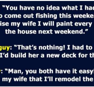 4 married guys start talking about their wives while fishing. Four married friends got together for a fishing trip, and just as they started fishing, they started…