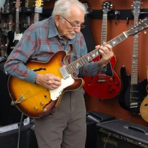 An 81-year-old grandpa walks into a guitar store, picks up one of the guitars, and starts playing to everyone’s amazement.