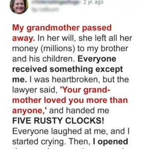 A Tale of Inheritance and Secrets A greedy brother mocks his younger sister after inheriting their grandmother’s house, while she receives only five rusty old clocks. Little…