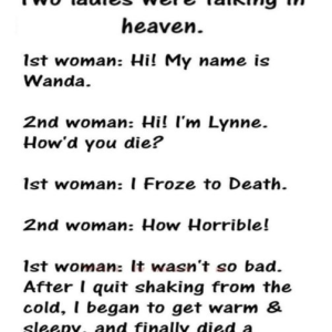 Two Women were talking in heaven about How They Died?
