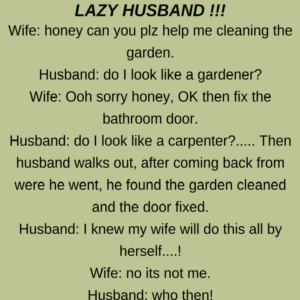 A lazy husband refused to help his wife with household chores. When asked to tidy the garden, he retorted, “Do I look like a gardener to you?!”…