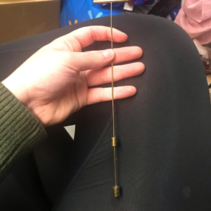“An oblong wooden object with grooves and a hole in it. It came in a box with a grain mill but doesn’t belong to the machine.”