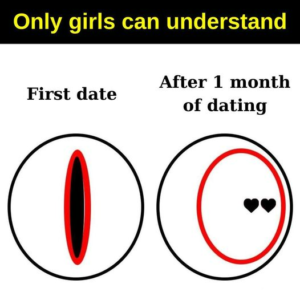 The Answer is =>>> On the first date, the girl feels very excited about the other person. After one month of dating, she likes the other person…