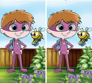 Try to find the hidden difference in the image of a smiling boy next to a bee collecting honey