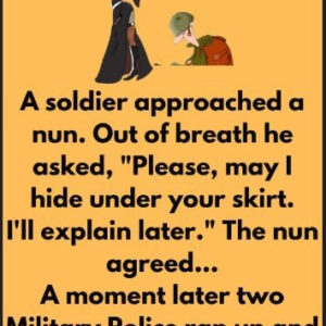 Out of breath, he asked, “Please, may I hide under your skirt? I’ll explain later.” The nun agreed… A moment later two Military Police ran up and…