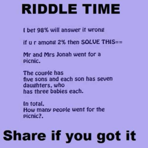 The riddle asks how many people went for the picnic, but only Mr. and Mrs. Jonah are mentioned as going. The rest of the information about their…