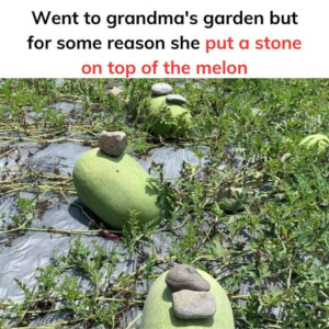 Went to grandma’s garden to play but for some reason she put a stone on top of the melon