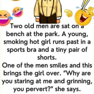 Two old men are sat on a bench at the park. A young, smoking hot girl runs past in a sports bra and a tiny pair of…