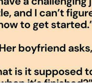 “Please come over and help me. I have a challenging jigsaw puzzle, and I can’t figure out how to get started.” Her boyfriend asks, “What is it…