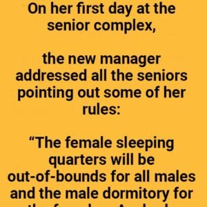 Setting Ground Rules On her first day at the senior complex, the new manager outlined her rules to all the seniors. Gender-Specific Sleeping Quarters She declared that…