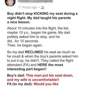 My dad gave his parents a nice lesson when his son wouldn’t stop kicking my seat during a long flight.