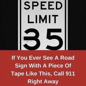 Call 911 as soon as you see a road sign like this one that has a piece of tape on it.