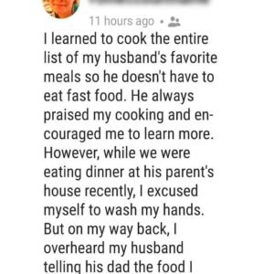 In front of me, my husband complimented my meal, but in front of his parents, he referred to it as “something that can only be fed to pigs.”