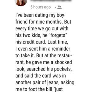 Every time we dine out, my boyfriend conveniently “forgets” his credit card. Keep reading below for the rest of the story in the first comment… 👇👇👇