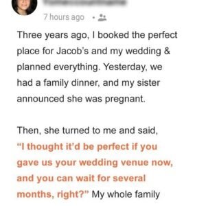 After three years of preparing, Jacob and I finally found the ideal location for our wedding. But my sister surprised us all with a bombshell during a…