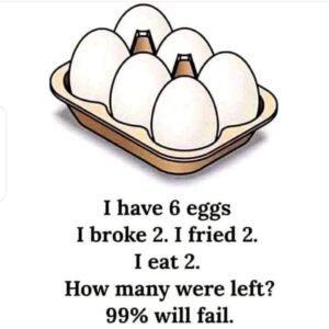 Here’s how you can figure it out: You started with 6 eggs. You broke 2 eggs. You fried 2 eggs (these could be the same eggs you…