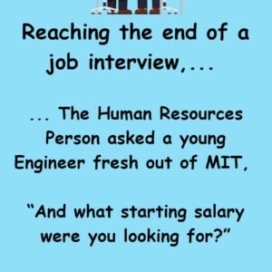 The Job Interview The Salary Question At the end of a job interview, the Human Resources person asked a young MIT engineer, “What starting salary are you…