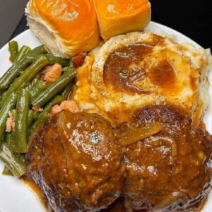 HAMBURGER STEAKS WITH ONION GRAVY