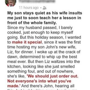 Confronting Disrespect: A Family Incident During a family gathering one evening, tension arose when Liz, my son’s wife, directed an insulting comment towards me, leaving me feeling…