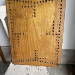 Cleaned out of an antiquated home. It measures around 24 by 4 feet, and each hole is roughly the size of a marble. It reminded me of an old-fashioned board game.