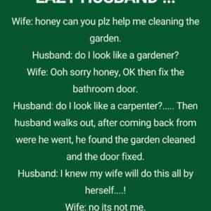 Unexpected Help: A Humorous Exchange Initial Request and Rejection Wife: “Honey, can you please help me clean the garden?” Husband: “Do I resemble a gardener?” Alternative Request…