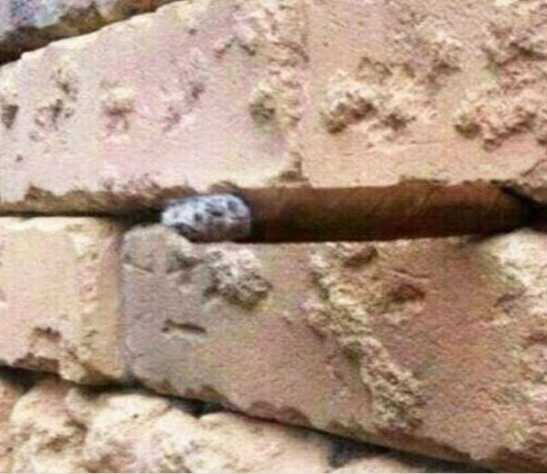 If you are still struggling to catch a glimpse of what you should be seeing: it’s a cigar, sticking outwards.