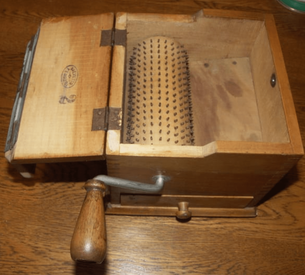 Madeleine Levaggi sent us a photo of this intriguing item. After reaching out to the Cotton Museum of South Carolina, we found out that it’s not a cotton gin as some might think. The logo on it says “Brevetto Ferrari 2.” Do you have any ideas about what it could be?