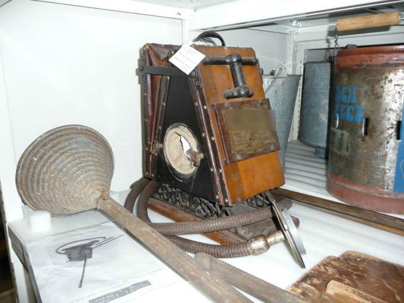This next item is still used today, but it has definitely changed over time. Can you guess what it is? If you said a vacuum cleaner, you are correct! The vacuum model pictured here is called the Baby Daisy. It was designed in France and dates back to 1910. The Baby Daisy was a manually-powered vacuum that required two people to operate it. One person would stand on the base of the vacuum, moving it back and forth using a broomstick in the holder, while the second person would do the actual vacuuming with the hose. It’s a good thing vacuum cleaners have come a long way!