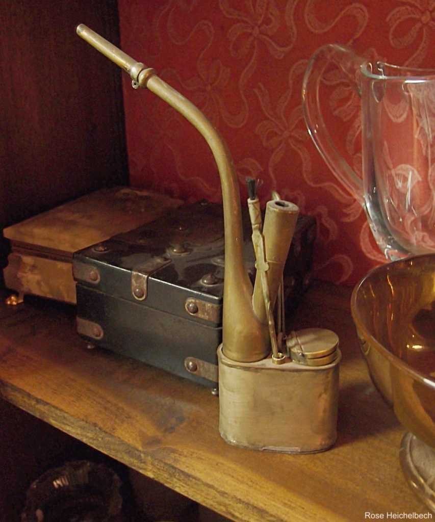 5) This one is brass with a lidded compartment, a small brush, and a spout. Betcha can’t guess!