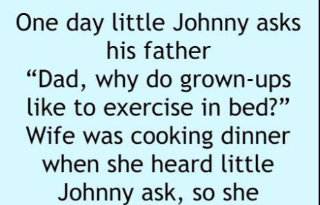 One day little Johnny asks his father “Dad, why do grown-ups like to exercise in bed?”