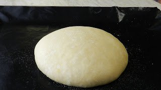 • Put the dough ball on a baking tray (or we can use a round baking pan/pizza pan).