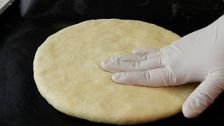 • Cover until almost doubled. After the dough expands, flatten with hand into a circle.