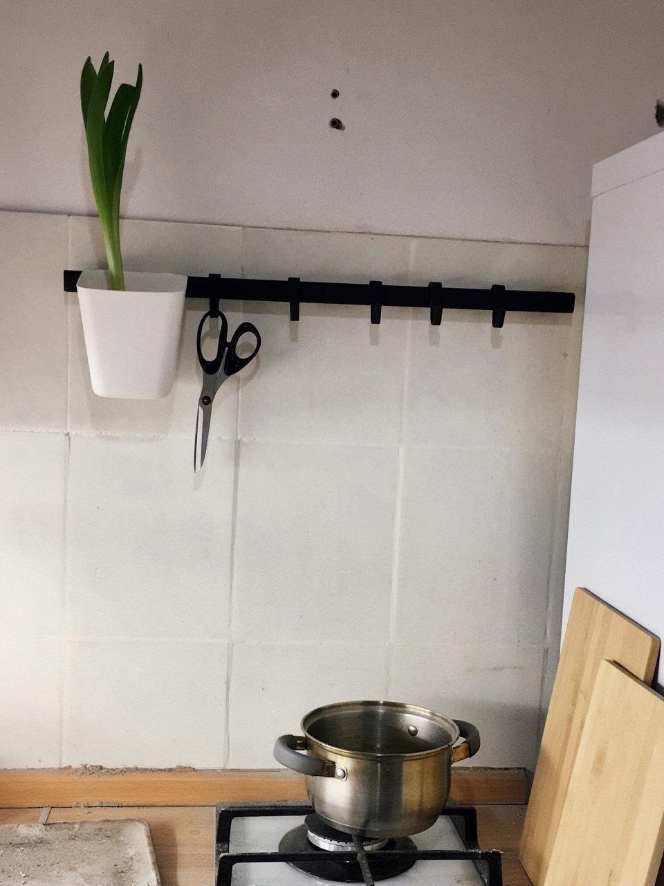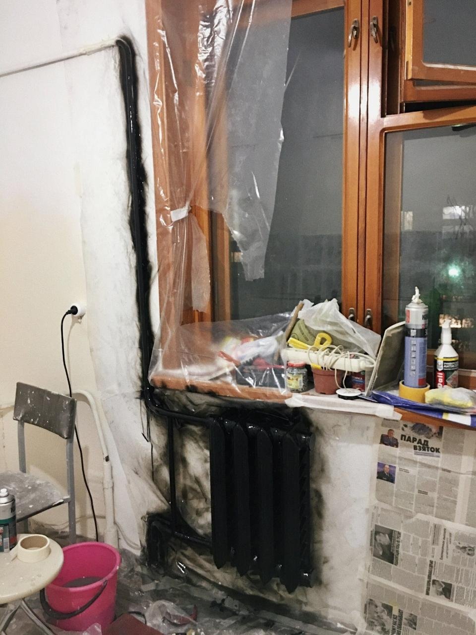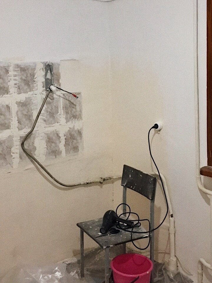 By the way, we first filled the walls with a regular filler and then with a fine filler. Later, I simply painted the walls white. I painted the faucet with black high-gloss spray paint from KUDO. I’ve tried many different brands for renovations.