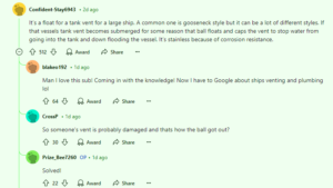 Answer : It’s a float for a tank vent for a large ship. A common one is gooseneck style but it can be a lot of different styles. If that vessels tank vent becomes submerged for some reason that ball floats and caps the vent to stop water from going into the tank and down flooding the vessel. It’s stainless because of corrosion resistance.