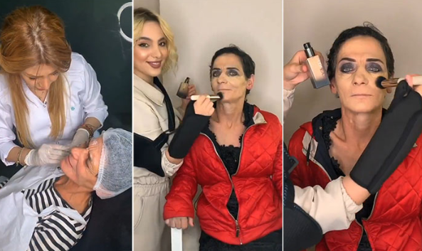 This old woman put on clothes and makeup and now she looks younger than ever.